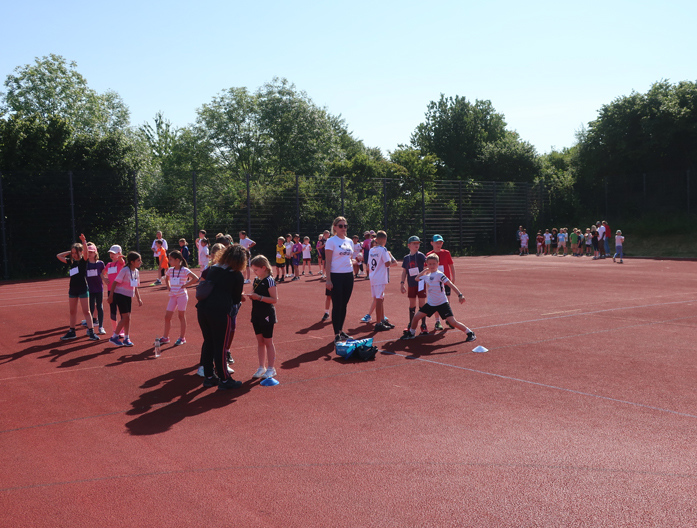 Die Klassen 3 und 4 starteten dann auf den Sportplätzen und die Kinder der Klassen 1 und 2 in der Turnhalle bzw. dem Schulhof. Nach der Frühstückspause konnte dann getauscht werden.
