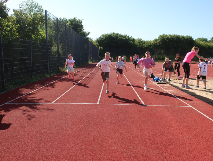Die Klassen 3 und 4 starteten dann auf den Sportplätzen und die Kinder der Klassen 1 und 2 in der Turnhalle bzw. dem Schulhof. Nach der Frühstückspause konnte dann getauscht werden.