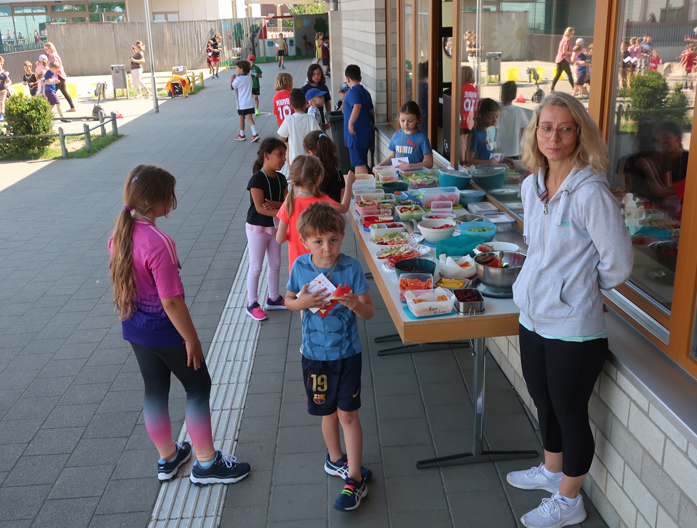 Für eine Stärkung zwischendurch hatten die Eltern den Kindern erfrischende Leckerein für ein Trimmfest-Buffet mitgeben. DANKE dafür und DANKE an die vielen Eltern-HelferInnen an den Stationen.