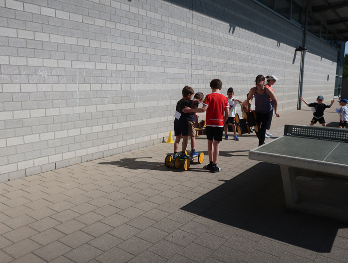 Die Klassen 3 und 4 starteten dann auf den Sportplätzen und die Kinder der Klassen 1 und 2 in der Turnhalle bzw. dem Schulhof. Nach der Frühstückspause konnte dann getauscht werden.