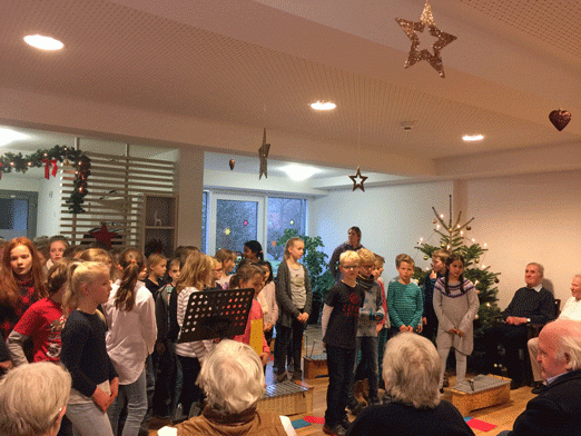 Dafür hatten sie vorher fleißig verschiedene Weihnachtslieder, Gedichte und auch Musikstücke eingeübt. Die SeniorInnen freuten sich sehr über den Einsatz der SchülerInnen.