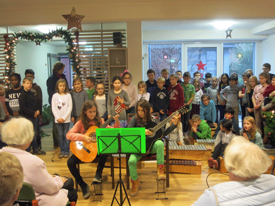Dafür hatten die Viertklässler zusammen mit ihren Klassenlehrerinnen und Musiklehrerinnen fleißig Lieder, Liedbegleitungen und Gedichte geübt und geprobt. So konnten sie – ganz gemäß unseres diesjährigen Adventsmottos – für andere ein Stern sein und etwas Strahlendes in den Alltag der Seniorinnen und Senioren bringen.