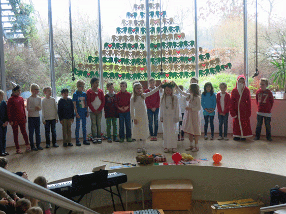 Es stand dieses Jahr unter dem Motto „Mit dem Herzen sehen“ und die Fotos unten zeigen, wie liebe- und stimmungsvoll die Klassen 2 und 3 diese Feier entsprechend gestaltet haben.