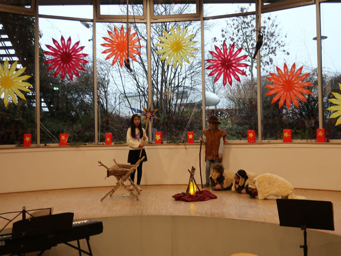 Donnerstag, der 22.12.23, war der letzte Schultag vor den Weihnachtsferien. Und endlich konnten wir nach Corona wieder ein richtiges Winterfest im Forum feiern, gleichwohl noch etwas getrennt. In der zweite Stunde starteten die Klassen 2 und 4, nach der Pause kamen dann die Klassen 1 und 3 ins Forum. Die Eltern kamen sehr zahlreich und freuten sich endlich wieder wie früher am Schulleben teilnehmen zu können. Sie sahen ein abwechslungsreiches, buntes Programm, dass die Klassen trotz der großen Krankheitswelle in den letzten Wochen auf die Beine gestellt hatten. Deutlich wurde die Botschaft: Weihnachten als Zeit des Friedens, der Eintracht, Freude, der Gemeinsamkeit. Gerade in unruhigen Zeiten wie diesen war dies eine wichtige Botschaft, die uns die Kinder geschenkt haben, was uns somit auch hoffnungsfroher in die Ferien hat starten lassen.