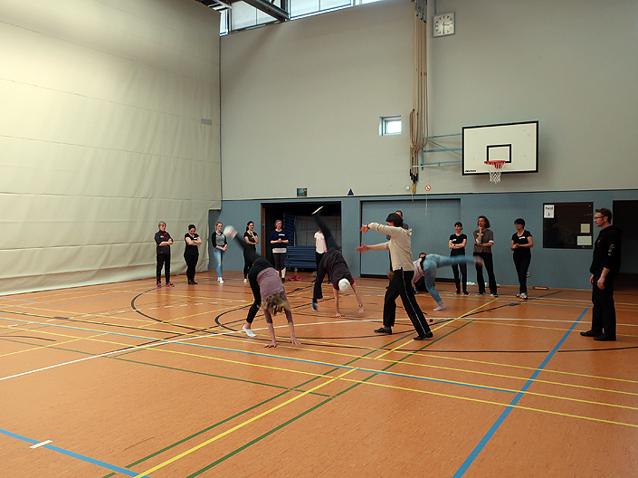 Am Montag, den 24.04.23, startete unsere Zirkus-Woche mit einer Vorstellung von Eltern und Lehrkräften. Dazu hatten diese sich bereits eine Woche vorher in der Turnhalle zu einer Fortbildung mit den Zirkus-Leuten vom „Circus ohne Grenzen“ getroffen. Die Bilder der ersten Foto-Galerie zeigen, wie erfolgreich sie dabei waren. Danke für diesen engagierten Einsatz!