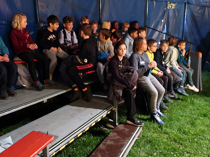 Am Montag, den 24.04.23, startete unsere Zirkus-Woche mit einer Vorstellung von Eltern und Lehrkräften. Dazu hatten diese sich bereits eine Woche vorher in der Turnhalle zu einer Fortbildung mit den Zirkus-Leuten vom „Circus ohne Grenzen“ getroffen. Die Bilder der ersten Foto-Galerie zeigen, wie erfolgreich sie dabei waren. Danke für diesen engagierten Einsatz!